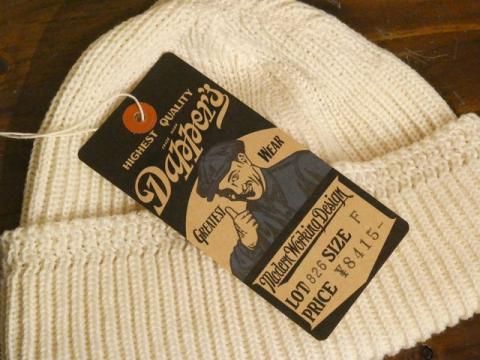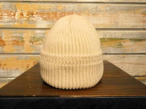 Lot1826 ”U.S.NAVY Style Woolen Knit Cap” WASHABLE WOOL100% Color:CREAM Size:FREE ダッパーズより、”U.S.NAVY Style Woolen Knit Cap”のご紹介です。 1940年代、アメリカ海軍のデッキ・クルー支給されていたWATCH CAPをモチーフに制作。 ウォッシャブル(防縮加工)を施したウールを使用したドライな肌触りで、 ビンテージ・ウールな雰囲気をお楽しみいただけます。 生地は16番双糸のウォッシャブル・ウール糸を用い7ゲージで編み立てています。 頭頂部は星型にハギを設け立体的な縫製。 ドライでザラついた無骨なニット感に仕上がっています。 本体裏にはDapper’sタグが付いています。 お好みに折り返し調整してご使用下さいませ。 カラーはポップなクリームとなります。