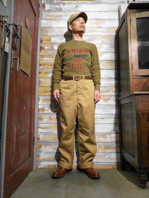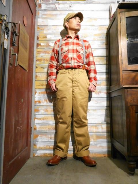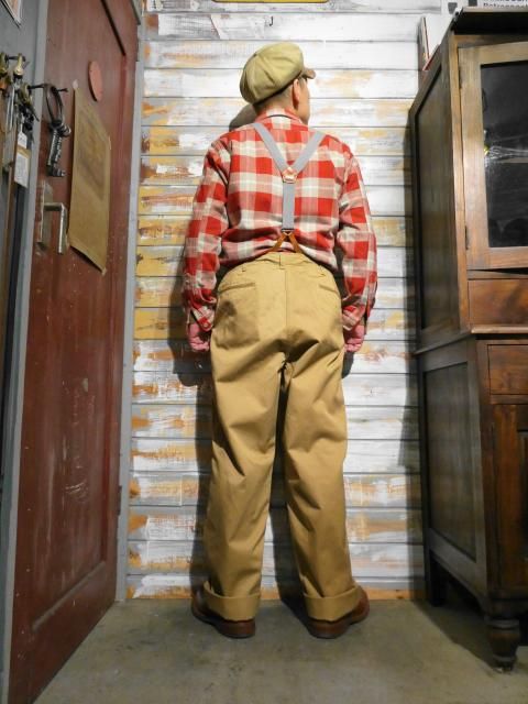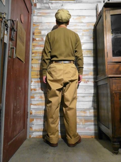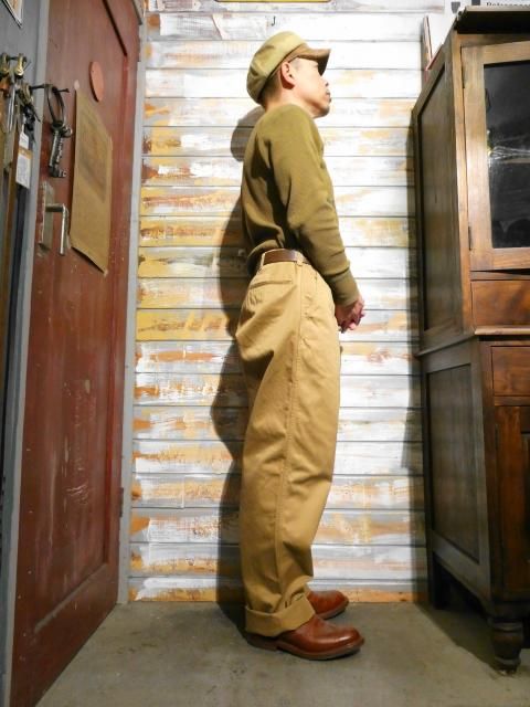 UNION SPECIAL OVERALLLS 1940¡Á1950s CIVILIAN MILITARY STYLE CLOTHING ¡ÉM-1950¡É TROUSERS COTTON KHAKI Vintage Style Military West Point Color¡§CAMEL ¥Õ¥ê¡¼¥Û¥¤¡¼¥é¡¼¥º¡¢UNION SPECIAL OVERALLS¥·¥ê¡¼¥º¤è¤ê¡¢ ¡ÉM-1950¡É¥È¥é¥¦¥¶¡¼¥¹ ¥³¥Ã¥È¥ó ¥«¡¼¥¤Î¤´¾Ò²ð¤Ç¤¹¡£ 1950ǯÂå¤Ë¥¢¥á¥ê¥«Î¦·³¤ËºÎÍѤµ¤ì¤Æ¤¤¤¿¥ª¥Õ¥£¥µ¡¼¡¦¥È¥é¥¦¥¶¡¼¥¹¤ò¥â¥Á¡¼¥Õ¤ËÀ©ºî¡£ ÆüËܤˤª¤¤¤Æ¥Á¥Î¡¼¥º¤ä¥Á¥Î¥Ñ¥ó¡¢¥³¥Ã¥È¥ó¡¦¥«¡¼¥¤È¸Æ¾Î¤µ¤ì¤ë¥ß¥ê¥¿¥ê¡¼¡¦¥È¥é¥¦¥¶¡¼¥¹·Ï¤Ç¤¹¡£ ÆÃĹ¤È¤·¤Æ¥µ¥¹¥Ú¥ó¥À¡¼¤¬»ÈÍѲÄǽ¤ÇÆâÂӤ˥µ¥¹¥Ú¥ó¥À¡¼¡¦¥Ü¥¿¥ó¤¬ÉÕ¤¤¤Æ¤¤¤Þ¤¹¡£ ¸Ô¾å¤¬¿¼¤¯¥Ò¥Ã¥×¼þ¤ê¤Ë;͵¤¬¤¢¤ê¡¢¤ä¤ä¥Æ¡¼¥Ñ¡¼¥É¤ò¸ú¤«¤»¤¿ÌîÊë¤Ã¤¿¤¤¥·¥ë¥¨¥Ã¥È¤È¤Ê¤ê¤Þ¤¹¡£ ¥Ç¥£¥Æ¥£¡¼¥ë¤È¤·¤Æ¥¦¥¨¥¹¥ÈÂÓ΢¤Ë¥µ¥¹¥Ú¥ó¥À¡¼¡¦¥Ü¥¿¥ó¤¬ÉÕ¤¤¤Æ¤ª¤ê¥µ¥¹¥Ú¥ó¥À¡¼¤ò»ÈÍѽÐÍè¤Þ¤¹¡£ ¥Õ¥í¥ó¥È¤Ï¥Ü¥¿¥ó¡¦¥Õ¥é¥¤»ÅÍÍ¡£ ¥ª¥ê¡¼¥Ö¡¦¥«¥é¡¼¤Î20ÐÇ¢ÁÇ¥¿¥¤¥×¡¦¥Ü¥¿¥ó¤ò»ÈÍѤ·¤Æ¤¤¤Þ¤¹¡£ ¥Õ¥í¥ó¥È¤Ï¥¹¥é¥Ã¥·¥å¡¦¥Ý¥±¥Ã¥È¤¬¤¢¤ê±¦¥Ý¥±¥Ã¥È¾åÉô¤Ë¤Ï¥³¥¤¥ó¡¦¥Ý¥±¥Ã¥È¤¬ÉÕ¤¤Þ¤¹¡£ ¥Ò¥Ã¥×¡¦¥Ý¥±¥Ã¥È¤Ï¤ä¤äº¸±¦¤Ë´ó¤Ã¤¿¥¯¥é¥·¥«¥ë¤Ê»ÅÍͤÇÊҶ̱ï»Å¾å¤²¡£ ¥Ò¥Ã¥×¦¥¦¥¨¥¹¥È¤«¤é¥Ý¥±¥Ã¥È¤Ë¤«¤±¤Æ¥Þ¥ÁË¥¤¤¤Ë¤Æ¥¦¥¨¥¹¥È¤ò¹Ê¤ê¹þ¤ó¤Àºî¤ê¡£ ¥Ð¥Ã¥¯¡¦¥»¥ó¥¿¡¼¡¦¥Ù¥ë¥È¡¦¥ë¡¼¥×¤Ï¥»¥ó¥¿¡¼¤«¤éº¸¤Ë¤º¤é¤·Ë¥À½¤µ¤ì¤Æ¤¤¤Þ¤¹¡£ À¸ÃÏ¤Ï¥Ó¥ó¥Æ¡¼¥¸¡¦¥¹¥¿¥¤¥ë¡¦¥ß¥ê¥¿¥ê¡¼¡¦¥¦¥¨¥¹¥È¡¦¥Ý¥¤¥ó¥ÈÀ¸ÃϤòºÎÍÑ¡£ ¹âÌ©Å٤˿¥¤é¤ì¤¿Áлå¤Î°½¿¥¤ê¤Ç¹âµé´¶¤¬¤¢¤ê¤Þ¤¹¡£ ¤ä¤ä¸÷Âô¤¬¤¢¤ê¥Ï¥ê¤È¥³¥·¤Î¸ú¤¤¤¿À¸ÃÏ´¶¤Ç¤¹¡£ ¥«¥é¡¼¤Ï¥¥ã¥á¥ë¤È¤Ê¤ê¤Þ¤¹¡£ ¥ï¥ó¥¦¥ª¥Ã¥·¥åºÑ¤ß SIZE¡¡¥¦¥¨¥¹¥È¡¡¥ì¥ó¥°¥¹¡¡¸Ô¾åÁ°¡¡¤ï¤¿¤ê¡¡¡¡¿þÉý 30¡¡¡¡¡¡82Ñ¡¡¡¡¡¡85Ñ¡¡¡¡¡¡32Ñ¡¡¡¡32Ñ¡¡¡¡¡¡22Ñ 32¡¡¡¡¡¡88Ñ¡¡¡¡¡¡85Ñ¡¡¡¡¡¡33Ñ¡¡¡¡34Ñ¡¡¡¡¡¡23.5Ñ 34¡¡¡¡¡¡92Ñ¡¡¡¡¡¡85Ñ¡¡¡¡¡¡34Ñ¡¡¡¡36Ñ¡¡¡¡¡¡24.5Ñ 36¡¡¡¡¡¡96Ñ¡¡¡¡¡¡85Ñ¡¡¡¡¡¡35Ñ¡¡¡¡38Ñ¡¡¡¡¡¡25.5Ñ Model¡§¿ÈĹ175Ñ¡¢ÂνÅ78¥¥í¤¬¥µ¥¤¥º34¤òÃåÍѤ·¤Æ¤¤¤Þ¤¹¡£ ºÇ¶á¥Á¥§¥Ã¥¯¤·¤¿¾¦ÉÊ