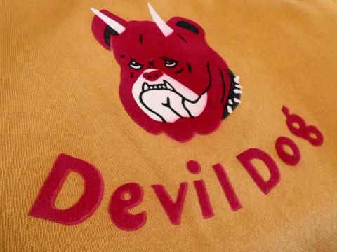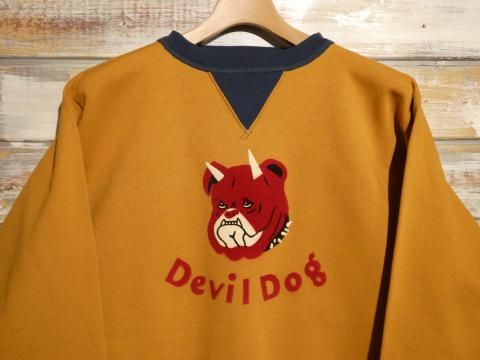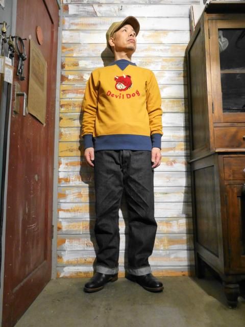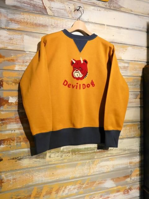 POWER WEAR WOVEN LABEL 1930¡Á1940s STYLE SET-IN SLEEVE SWEAT SHIRT ¡ÉDevil Dog¡É DOUBLE V SWEAT SHIRT FRONT PRINT¡§VINTAGE FROCK PRINT Vintage Style Medium Weight Fleece Color¡§OLD GOLD¡ßDEEP BLUEBERRY ¥Õ¥ê¡¼¥Û¥¤¡¼¥é¡¼¥º¡¢POWER WEAR¥·¥ê¡¼¥º¤è¤ê¡¢ ¡ÉDevil Dog¡É¥À¥Ö¥ëV¥¹¥¦¥§¥Ã¥È¡¦¥·¥ã¥Ä¡¦¥»¥Ã¥È¥¤¥ó¡¦¥¹¥ê¡¼¥Ö¡¦¥×¥ê¥ó¥È¡¦¥«¥¹¥¿¥à¤Î¤´¾Ò²ð¤Ç¤¹¡£ 1930ǯ¸å´ü¤ÎU.S.MC¡ÊUnited States Marine Corps¡Ë ¥¢¥á¥ê¥«³¤Ê¼Ââ¤ò¥¤¥á¡¼¥¸¤·¤¿¥×¥ê¥ó¥È¤ò»Ü¤·¤¿Î¾V¥¹¥¦¥§¥Ã¥È¤È¤Ê¤ê¤Þ¤¹¡£ ¥¢¥á¥ê¥«³¤Ê¼Ââ¤ÏÂХɥ¤¥Äʼ»Îã¤Ë°Ëâ¤Î¸¤¡ÚDEVIL DOG¡Û¤È¤¤¤¦°Û̾¤Ç¶²¤ì¤é¤ì¤Æ¤¤¤Þ¤·¤¿¡£ ¤½¤ó¤Ê¥Ç¥Ó¥ë¡¦¥É¥Ã¥°¤Î¥¥ã¥é¥¯¥¿¡¼¤ò¥×¥ê¥ó¥È¤·¤¿Åö»þ¤Î¥¹¥¦¥§¥Ã¥È¡¦¥·¥ã¥Ä¤Î³¨·¿¤ò¿·¤¿¤Ë½ñ¤µ¯¤³¤·¡¢ ¥Ó¥ó¥Æ¡¼¥¸¡¦¥Õ¥í¥Ã¥¯¡¦¥×¥ê¥ó¥È¡ÊÅÅÃå¥Õ¥í¥Ã¥¯¡¦¥×¥ê¥ó¥È¡Ë¤òÍѤ¤¤ÆÀ©ºî¡£ ÅÅÃå¥Õ¥í¥Ã¥¡¼¥×¥ê¥ó¥È¤ÏºÙ¤«¤¤¥Ñ¥¤¥ëÁ¡°Ý¤òÀÅÅŵ¤¤ÇÂÓÅŤµ¤»¸Ò¤Ç°µÃ夵¤»¤ëµ»Ë¡¤Ç¤¹¡£ ¸½ºß¤Î¥Õ¥í¥Ã¥¡¼¤Ï´Ê°×Ū¤Ë¥Õ¥§¥ë¥È¤òËÜÂÎÀ¸ÃϤËŽ¤ê¹ç¤ï¤»¤Æ¤¤¤Þ¤¹¡£ ¥Õ¥í¥ó¥È¥»¥ó¥¿¡¼¤Ë2ËܳѤΥǥô¥£¥ë¡¦¥É¥Ã¥°¤¬ÉÁ¤«¤ì¤Æ¤¤¤Þ¤¹¡£ ¤½¤Î²¼¤ËDevil Dog¤Î¥¯¥é¥·¥«¥ë¤Ê½ñÂΤ¬¤¢¤ê¤Þ¤¹¡£ ¶¦¤Ë¥Ó¥ó¥Æ¡¼¥¸¡¦¥Õ¥í¥Ã¥¯¡¦¥×¥ê¥ó¥È»Å¾å¤²¡£ ¥Û¥ï¥¤¥È¡¦¥Õ¥í¥Ã¥¡¼¤Î¾å¤Ë¥ì¥Ã¥É¡¢¥Ö¥é¥Ã¥¯¡¦¥«¥é¡¼¤Î¥¨¥¢¥Ö¥é¥·¡¦¥Õ¥£¥Ë¥Ã¥·¥å¤ò»Ü¤·¤Æ¤¤¤Þ¤¹¡£ ¥¹¥¦¥§¥Ã¥È¡¦¥·¥ã¥Ä¤Ï1930¡Á1940ǯÂå¤Ë¸ºß¤·¤¿Î¾V¥¬¥¼¥Ã¥È¡¦¥¹¥¿¥¤¥ë¤Î¥¹¥¦¥§¥Ã¥È¤ò¥â¥Á¡¼¥Õ¤ËÀ©ºî¡£ Á°¸å¶¦¤ËV¥¬¥¼¥Ã¥È¤¬ÍѰդµ¤ì¤¿¥»¥Ã¥È¥¤¥ó¡¦¥¹¥ê¡¼¥Ö¡¦¥¹¥¿¥¤¥ë¡£ »°³Ñ·¿¥Õ¥é¥¤¥¹¡¦¥ê¥Ö¤ò2ËܿˤÇË¥À½¤·¤¿V¥¬¥¼¥Ã¥È¡£ V¥¬¥¼¥Ã¥È¤Ï¥Í¥Ã¥¯¤Î¿¤ÓËɻߤä´À»ß¤á¤Î°Ù¤È¤â¸À¤ï¤ì¤Æ¤¤¤Þ¤¹¡£ ¼ó¸µ¤Î¥ê¥Ö¤ÏÉý2.5Ñ¡£ µÀè¤È¿þ¥ê¥Ö¤ÏÉý11ѤȤʤäƤ¤¤Þ¤¹¡£ À¸ÃÏ¤Ï¥Ó¥ó¥Æ¡¼¥¸¡¦¥ß¥Ç¥£¥¢¥à¡¦¥¦¥§¥¤¥È¡¦¥Õ¥ê¡¼¥¹¤òºÎÍÑ¡£ ΢µ¯ÌÓ¤µ¤ì¤¿ÃæÆù¸ü¤ÎÀ¸ÃϤǽÀ¤é¤«¤¯Ãå¿´ÃϤΤ褤À¸ÃÏ´¶¤Ç¤¹¡£ ¥«¥é¡¼¤Ï¥Ü¥Ç¥£¤¬¥ª¡¼¥ë¥É¡¦¥´¡¼¥ë¥É¡¢¥Õ¥é¥¤¥¹¡¦¥ê¥Ö¤¬¥Ç¥£¡¼¥×¡¦¥Ö¥ë¡¼¥Ù¥ê¡¼¤Î2¥È¡¼¥ó¡£ ¤³¤Î¥«¥é¡¼¤ÏU.S.M.C¤Î¥¤¥á¡¼¥¸¥«¥é¡¼¤È¤Ê¤ê¤Þ¤¹¡£ ¥Î¥ó¥¦¥ª¥Ã¥·¥å SIZE¡¡Ã徿¡¡¸ªÉý¡¡¿ÈÉý¡¡Âµ¾æ 38¡¡¡¡65Ñ¡¡46Ñ¡¡54Ñ¡¡63Ñ 40¡¡¡¡67Ñ¡¡48Ñ¡¡57Ñ¡¡63Ñ 42¡¡¡¡69Ñ¡¡50Ñ¡¡59Ñ¡¡64Ñ ¢¨Ì¤Àö¤¤¤Î¤¿¤áÀöÂõ&¼«Á³´¥Áç¤ÇÃ徿4¡Á5Ñ¡¢¿ÈÉý2ÑÄøÅ٤ν̤¬È¯À¸¤·¤Þ¤¹¡£ ¿ÈÉý¤Ï½Ì¤ß¤ÏÃåÍѤ¹¤ë»ö¤Ç¸µ¤Î¿ôÃͤËÌá¤ê¤ä¤¹¤¤¤Ç¤¹¡£ ¥¿¥ó¥Ö¥é¡¼´¥Áç¤ÏÂ礤ʽ̤ߤθ¶°ø¤È¤Ê¤ê¤Þ¤¹¤Î¤Ç¤´±óθ²¼¤µ¤¤¡£ Model¡§¿ÈĹ175Ñ¡¢ÂνÅ78¥¥í¤¬Ì¤Àö¤¤¥µ¥¤¥º40¤òÃåÍѤ·¤Æ¤¤¤Þ¤¹¡£ ºÇ¶á¥Á¥§¥Ã¥¯¤·¤¿¾¦ÉÊ